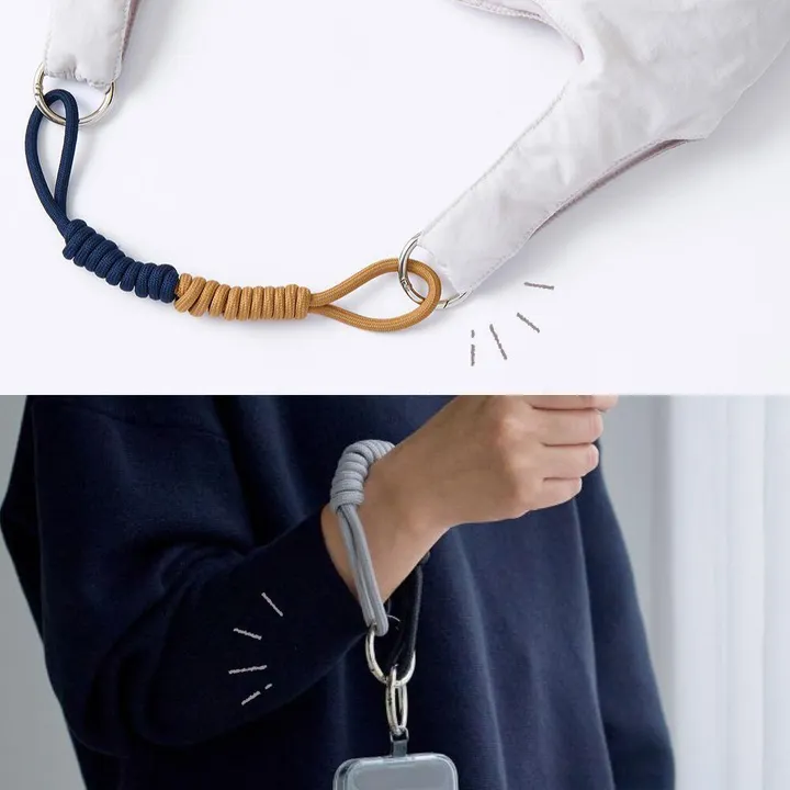 ハンドメイドならではの美しい編み込みが魅力の配色コードショートストラップ。スマホに付けるだけで、カジュアルながらもおしゃれなアクセントに。手首に通せば落下防止になるのでスマホ操作も安心。自分らしいスタイルを楽しめる、実用性とデザイン性を兼ね備えたアイテムです。 ふんわり軽いナイロン素材のキルトバッグのショルダーハンドル、また季節の装いにプラスしたいファーの2WAYバッグ コットニーの替えショルダーとしてお使いいただけます。 素材:ポリエステル100%、亜鉛合金 サイズ:幅1.5×長さ26cm リング:直径4cm 生産地:中国 耐荷重2kg この製品は、日焼け、汗や水に濡れた場合の摩擦により、他の物への色移りや変色する場合がありますのでご注意ください。