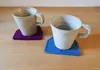 カラフルなおうちの形のフェルトのコースター。 赤にはブルーで、紫にはピンク、ブルーには紫でミシンでステッチを入れています。 北欧風のシンプルなデザインなので、グラスにも合いますし、もちろん陶器のコップにも。 明るい色が、楽しい気分にさせてくれます! フェルトで作られたコースターは柔らかく机を痛めませんし、ウールは汚れも染み込みにくいのでコースターとして最適です。 クリスマスプレゼントや引っ越し祝い、結婚祝いとしてプレゼントするのもおすすめです。