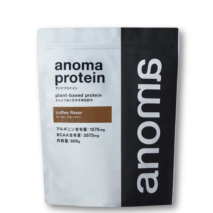 アラビカ種コーヒーの、本格的な香りが味わい深いフレーバー。ほろ苦く甘さ控えめな、大人の味。 「自然な甘さとおいしさ」 anoma独自の技術で、人工甘味料や砂糖を使わずに天然甘味料のみで自然な甘さとカラダへの優しさを実現。 本格素材の味付けで、プロテインなのに毎日飲めるおいしさを実現しました。 「アスリートも使う高機能 BCAA4000mg、アルギニン1500mg以上配合」 ピープロテインと玄米プロテインの独自比率配合により、1食30gあたりタンパク質20g以上を実現。 必須アミノ酸BCAAやアルギニンの高配合とエネルギー変換率の高いMCTオイルも配合。ハードなトレーニングを行うアスリートの仕様にも耐えうる高機能な商品です。 「安全性にこだわった原材料」 anomaは、アレルギーリスクが最も少ないとされるえんどう豆を使用し、さらに遺伝子組み換えリスクが最も低いとされる欧州産えんどう豆に厳選。 玄米タンパクも除草剤が使用されていないものを使用。 安全性にも徹底的にこだわりました。 また従来のプロテインに使用が多い人工甘味料、保存料、着色料、乳化剤は一切使用していません。 「環境負荷の低い粉末栄養食」 ピープロテインは動物性のタンパク質で作られるプロテインと比較して、より少ない土地や水の使用量で生産することが可能です。私たちは「持続可能な食を提供する」というミッションのもと、国連の定めるSDGsの考えに賛同し、より環境負荷の少ない粉末栄養食を開発しています。