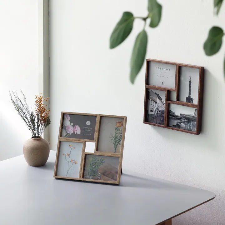 4つの瞬間が一つの枠に。あなただけの宝物フレーム。 インテリアにさり気なく飾れる、枠が連なったシンプルなフォトフレーム。 ストーリー仕立ての写真を飾ったり、どんなお部屋にも合いそうな需要の高いアイテムです。 壁掛けと置き両方に対応しています。