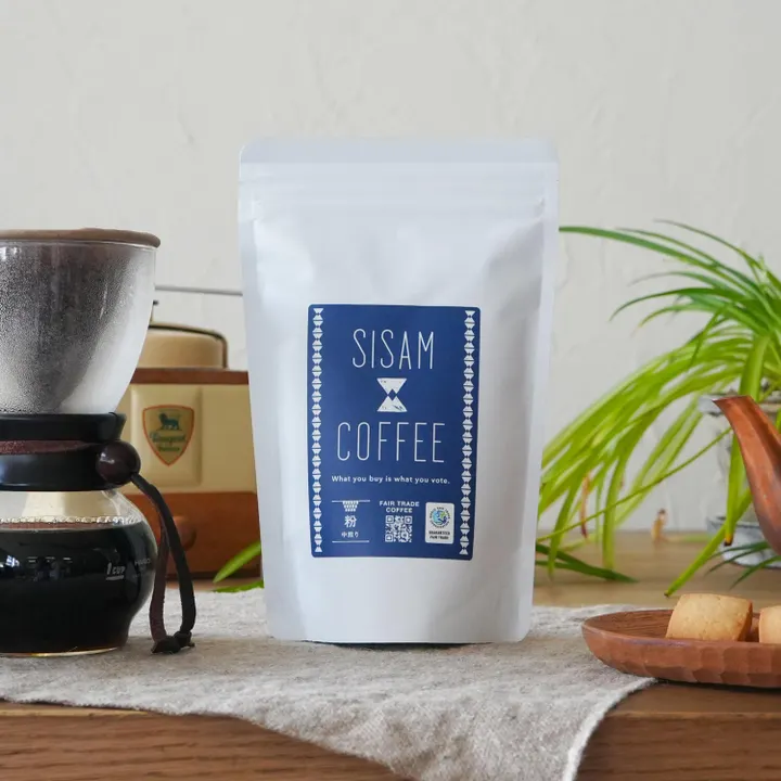 SISAM COFFEEは、シサム工房のオリジナルのフェアトレードコーヒーです。 目指したのは、シンプルにおいしいこと。「みんなが幸せになるコーヒー」であること。 SISAM COFFEEのコンセプトである「シンプルにおいしいこと、「みんなが幸せになるコーヒー」であること」はそのままに、「朝に飲みたいコーヒー」をテーマに焙煎されました。 柑橘系のような爽やかな酸味と、ナッツのような香ばしさが特徴です。 深煎りに比べ、より軽い飲み口で後味もすっきり。心地よく体を目覚めさせてくれる朝の1杯になること間違いなしです! *焙煎は京都で行われています ■ CGN(コーディリエラ・グリーン・ネットワーク) フィリピンのルソン島で活動する環境NGO「コーディリエラ・グリーン・ネットワーク(以下CGN)」は、山で自然と共に生きる人々の暮らしを支えるため、CGNからは生産者グループに、コーヒー豆の仕入れ額とは別に18%のプレミアムが支払われています。 各世帯の人々がそれぞれCGNとともに、自分たちの生産活動と地球環境、健康との結びつきなどへの意識を高めながら、コーヒー栽培に取り組んでいます。 シサムコーヒーはフィリピン北部コーディリエラ地方で環境や伝統を守りながら暮らす小規模農家の人たちを支援するコーヒー。 【オーガニック】 認証は未取得ですが、化学肥料や農薬を用いず、多様な野菜や樹木と一緒に栽培するアグロフォレストリー(森林農法)で育てられています。