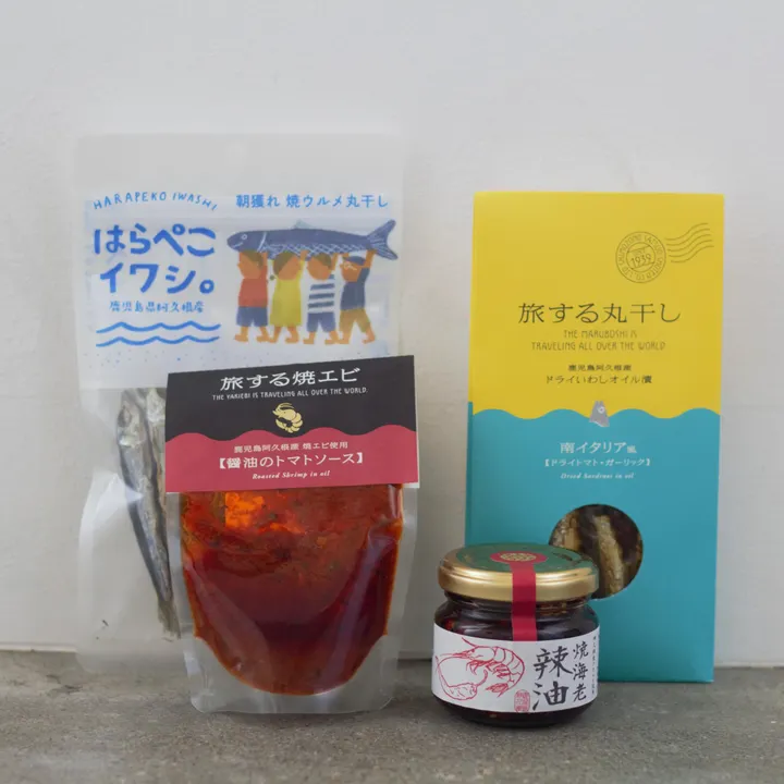 噛めば噛むほど旨味が広がるウルメイワシの丸干しや芝エビを使った辣油など鹿児島県の北薩エリアの産品に一手間加えた商品があなたの食卓を旅します。