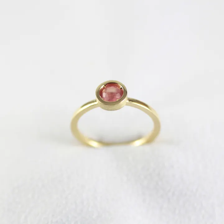 素材:K18YG、ロードクロサイト:0.35ct ○M JEWELRY スペインの建築家アントニ・ガウディ。彼が残した「美しい形は構造的に安定している。構造は自然から学ぶべきである」の言葉から着想を得て、自然の中にある曲線をコンセプトに、「M」という文字を表現、シンプルかつ美しいラインを追求しました。また、渦巻き・惑星・樹木の幹など自然界にある、もっとも単純な丸い形モチーフや、原石のそのままの美しさを活かし作品など、自然界の形に着目したコレクションです。