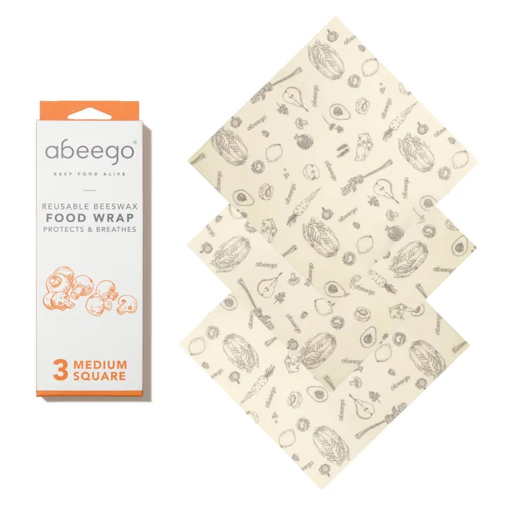 ※本国でのブランド終了に伴い、在庫限り販売終了となります。 【ミディアム 3枚セット】 使いかけのお野菜や、庭で摘んだハーブの保存にオススメのミディアムサイズ3枚セット。 食べかけのチーズの保存にも最適です。 袋状に成型して使用することもできます。 \\ ナチュラルでサステイナブルなabeegoのビーズワックスラップを使用して、              健康的で地球にも優しい食生活を送りませんか? // 【100%天然素材のみで作られた新しいかたちの食品保存用のラップ】 ”生きている食べ物の摂取=リビングフード※“が注目される中、 その保存方法を巡り、ラップされた食材に呼吸をさせることができ、 また健康的で地球に優しい保存方法が無いかと考え出されました! ※野菜や果物等の生きている酵素や栄養素を積極的に取り入れる、世界で注目されている食事法 生地を使うことで、一般的な使い捨てのラップフィルムにはない、程よい通気性を保ち、 ミツロウやホホバオイルの天然の保湿性と抗菌性により、包んだ食品の鮮度を長持ちさせます。 その結果、食品に含まれる栄養素だけでなく、 その栄養素を身体に吸収し消化・代謝を促すために不可欠な酵素の持ちも、各段に良くなるのです。 使い方もいたって、シンプル。 冷水で手洗い後、乾かしていただくだけ! 身近なところから、「シングルユース=使い捨て」を減らしていきませんか? ――――――――――――――――― こんな方にオススメ! ☑環境問題に関心の高い方 →このビーズワックスラップを使用し、食品の持ちが良くなる事で、フードロス削減にも一役買います。冷水での手洗いで、約1年ほど繰り返し使用可能です。また最後は、土に還し堆肥にすることも出来ます。 ☑エコやサステナブルな生活をこれから始めたい方 →abeegoのビーズワックスラップを使用することで、ラップフィルムゴミを減らすことが出来ます。お手入れや保管も容易なので、毎日の生活にすぐに取り入れられます◎ ☑健康に配慮されている方 →包んだ食品の鮮度を長持ちさせ、食品に含まれる栄養素と酵素の持ちが格段に良くなります。 ☑大切な方へのプレゼントに ―――――――――――――――――