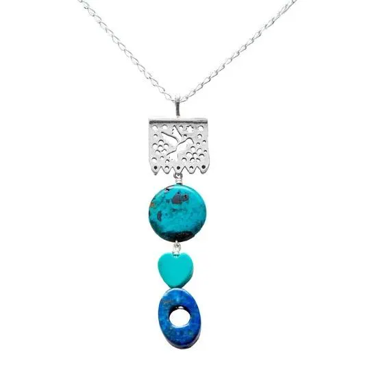 Dije Papel Picado Lluvia|パペルピカドのネックレス(シルバー・ターコイズ・天然石)