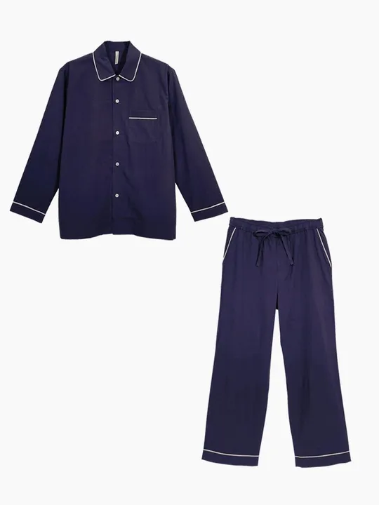 シンプルかつ上品なスリーピング上下セット。 細かいストライプ柄のコードレーン生地は、少し張り感のあるさらっとした肌触りが魅力。 シンプルなデザインでありながら、襟元と袖部分にあしらわれたパイピングが、さりげないアクセントをプラスします。 SkinAware では「ボタニカルダイ(植物染め)」によってオーガニックコットンの特性を損なわず、様々な色を表現しています。 ボタニカルダイとは、 植物の花、葉、果実などから抽出した染料をタンパク質で生地に吸着させ、植物本来の持つ鮮やかな発色を実現した新しい染色技術。 自然とサイエンスを融合させたハイブリッドな染色方法は、植物が持つエネルギーを感じることができ、リラックスやヒーリング効果も期待されています。 カラーは、邪気を祓うお守りの木として知られるログウッドで染めた「ネイビー」。