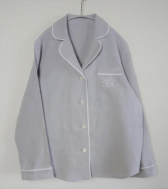 レディース・パジャマ 高密度のフレンチリネン100% ライトグレー(パイピング白) M