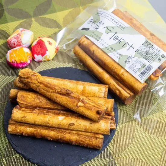 国産原料100%無添加で食べやすいお麩に口どけの良い黒糖を塗ったふ菓子です。 さくさく食感でしっかりと焼き上げたお麩は大人のおやつにぴったりで気づいたら一袋なくなってしまうことも…。 麩や銀のふ菓子は一本一本真心込めて手作りしています。昔ながらの平窯を使い、職人の手作業で1本1本焼き上げています。焼き上げたお麩を乾燥させて、翌日黒糖を塗り3日かけて丁寧に仕上げています。 安心安全に黒糖の自然な甘さを味わっていただいという思いから、国産原料100%、無添加にこだわったふ菓子を作りました。 ふ菓子は小さいお子様から大人まで年代を問わず、楽しんでいただけるお菓子です。 小麦グルテンはタンパク質が豊富で、鉄分・アミノ酸も含まれており、口どけもよく消化吸収もよいため小さなお子様やご年配の方にもおすすめです。 <商品の特徴> - 天然素材を使用しており、体に優しいヘルシースイーツ - 炭水化物や脂質が控えめで、ダイエット中の人にもおすすめ - 手土産やプレゼントにも最適 - 自分用のおやつにもぴったり