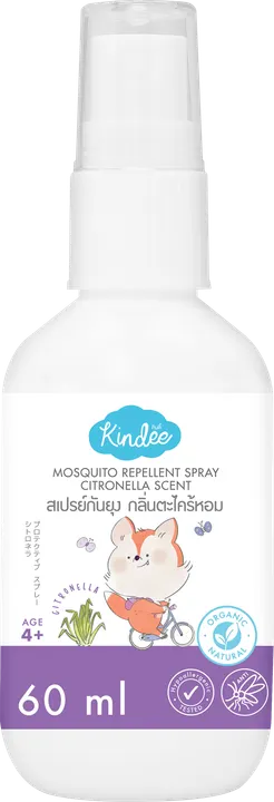 タイにおける子供用プロテクションスキンケアの大人気ブランド「キンディーキッズ」。 赤ちゃん時代に湿疹で悩まされた敏感肌の娘のために、母親がオーガニック&ナチュラル成分で作ったスキンケアシリーズです。数多くの世界的に有名な高級ホテルのアメニティーやスパ製品ブランドを作っている製造所と共同で開発しました。 低アレルギー性の認証を取得しており、ベビーのお肌にも使えるマイルドな製品です(*)。 「キンディー」はお子様たちが屋外で安心して遊び、能力を育てられるようお手伝いします。 ・活発なお子様の夏の屋外での活動に。ナチュラル&オーガニック処方のアウトドア用スキンローション。 ・シトロネラ、ラベンダー、ユーカリプタスの精油が不快な刺激から優しくお肌を守ります。 ・4歳児からお使いいただけます。 ・約4時間効果が持続・お肌から少し離してスプレーしてください。 ・腕や足はもちろん、お顔にも使えます。お顔に使う際は手のひらに適量をスプレーしてからお顔に塗ってください。 ・低アレルギー性認証取得済み(*) ・パラベン、香料不使用 (*)すべての方に皮膚アレルギーが起こらないということではありません