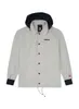 ベーシックなコーチジャケットながら、収納式のフードやリブ袖など細部にこだわりが見える。 コーティング生地を使用することにより耐水性にも優れています。 フロントとバックのロゴもポイント。 グレーにブラックのリブ袖がクールなコーチジャケット。