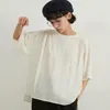 肩と背中にギャザーをたっぷり入れたシアー感のあるサマートップ。すっきりとしたラウンドの襟ぐりから後ろに伸ばしたバインダーのリボン、そしてその先っぽに付けたシェルボタンがチャームポイントです。ゆったりサイズなので、二の腕とボディのラインを気にせず、気楽に合わせ易いアイテムです。さらっとした触感で夏に涼しく着て頂ける一枚です。 サイズ  着丈  バスト  肩幅  袖丈 FREE   65   120    60   18㎝ 素材:綿85% リネン15% 透け感:ややあり 生地の厚さ:薄手 光沢感:なし 裏地:なし 家庭洗濯:可能(ネット使用) 【注意点】 ※撮影商品はサンプルの為、実際の仕様と異なる場合がございます。 ※画像の商品は光の照射や角度、お使いのモニター環境により、実物と色味が異なる場合がございます。スタジオ物撮りの画像が実物の色味に一番近くなっております。 ※予約商品の場合、お届け予定はあくまでも目安となります。 生産の都合上、お届け時期がずれる場合がございますので、あらかじめご了承ください。 ※表記サイズは商品の実寸です。 ※布製品の特性上、サイズ表の実寸法は多少の誤差が生じる場合がございますので、予めご了承ください。 #半袖#綿リネン#ギャザーブラウス#赤色#夏トップ#通気性が良い#サステナブルファッション#定番トップ#定番ブラウス#サマートップ#大人ガーリー#レトロガーリー#天然素材#リネンミックス