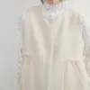 KNXJ516・可愛くきちんと感のドビーチュールレースレイヤードベスト・ラウンドネックジレ BEIGE/FREE