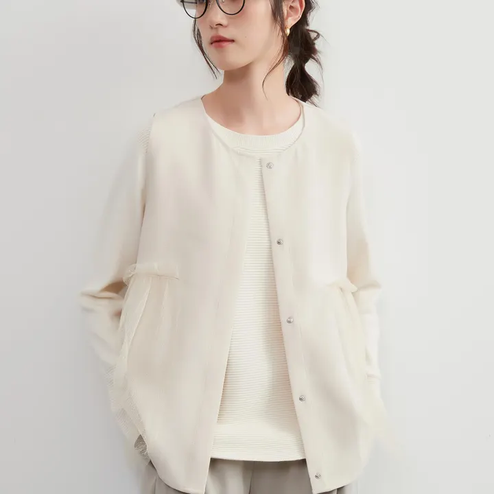 商品の特徴: このベストは、ドビーチュールレースがウエストからレイヤードされたデザインが特徴です。ラウンドネックのシルエットが顔まわりを優しく引き立て、エレガントな雰囲気を演出します。きちんと感を持ちながらも可愛らしさをプラスしたアイテムです。 生地の特徴: 繊細なドビーチュールレースが優しい風合いで、軽やかで快適な着心地を提供します。ベースの生地には程よい肉厚の肌触りの良い素材が使われており、オールシーズン着用可能です。 コーディネートの提案: このベストは、シンプルなブラウスやTシャツとの相性が抜群です。カジュアルなデニムやタイトなスカートに合わせて、デイリースタイルにもオフィススタイルにも活用できます。少しフォーマルなシーンでは、パンツスーツやワンピースと組み合わせて洗練された印象を与えます。 単位(cm)モデル身長165cm サイズ FREE  着丈 61 バスト 98 肩幅 33 素材:ポリエステル95% ポリウレタン5% 別布:ポリエステル100% 中国製 透け感:なし 生地の厚さ:普通 光沢感:なし 裏地:なし 家庭洗濯:可能 【注意点】 ※撮影商品はサンプルの為、実際の仕様と異なる場合がございます。 ※画像の商品は光の照射や角度、お使いのモニター環境により、実物と色味が異なる場合がございます。スタジオ物撮りの画像が実物の色味に一番近くなっております。 ※予約商品の場合、お届け予定はあくまでも目安となります。 生産の都合上、お届け時期がずれる場合がございますので、あらかじめご了承ください。 ※表記サイズは商品の実寸です。 ※布製品の特性上、サイズ表の実寸法は多少の誤差が生じる場合がございますので、予めご了承ください。