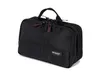 ブランドカラーの黒と赤を基調としたシンプルでベーシックなシリーズ。 深みのある黒と鮮やかな赤のコントラストにより、シックな魅力をもたらすと同時に、個性とエレガンスを際立たせています。 シンプルなシリーズだからこそ、素材、品質、丁寧な縫製に徹底的にこだわった、使い込むほどに愛着が湧く逸品です。洗練された外観と機能性は、日常のあらゆるシーンで活躍し、あなたのスタイルを際立たせることでしょう。 トップからの斜めのカッティングにより、スマートながらも、十分な収納力を実現しました。 ファスナーを開くとフロント部分の上半分が手前に倒れるつくり。中身が見渡しやすいうえ、中に入れたアイテムの出し入れもスムーズです。 フロントファスナーを開くと、手前にサイズ違いの3つのブラシホルダー。口元にはゴムが入っており、太めのブラシもしっかりホールドします。そのホルダーはビニール製の下敷きとフラップ付きなので、毛先が美しく保てるうえ、ポーチ内への粉飛びも防げます。 奥側のファスナーを開くと、底マチの広い大きめのスペースが。コスメだけでなく通帳やパスポート、長財布も入れられるサイズです。 手前と奥で、コスメと日用品を分け入れできるので、ミニバッグとして。大きめバッグに詰めてバッグ・イン・バッグとして。ポーチの用途がぐんと広がります。
