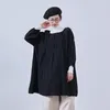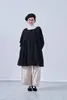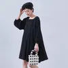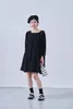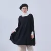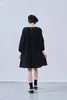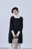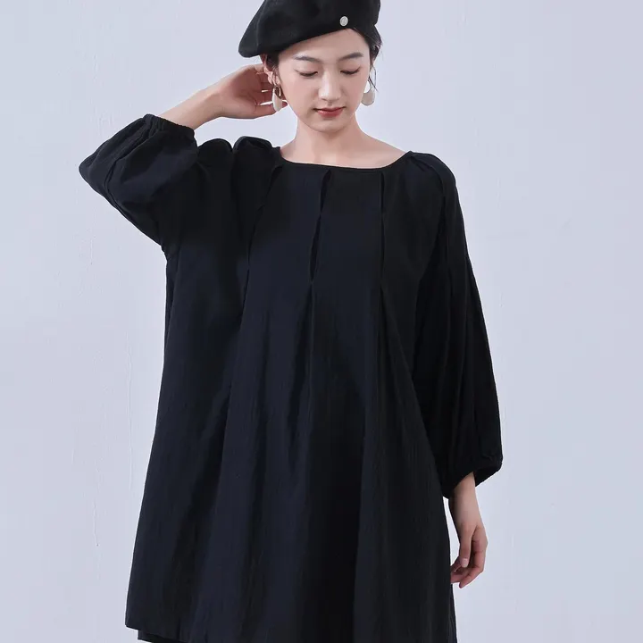 KNNO358-綿100%・チュニック丈・タックステッチ入り・Aライン・長袖ワンピース BLACK/FREE