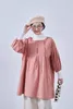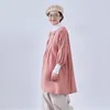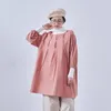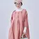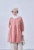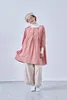 KNNO358-綿100%・チュニック丈・タックステッチ入り・Aライン・長袖ワンピース PINK/FREE