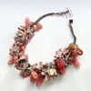 トルコの伝統手工芸オヤのガーデンネックレス 糸とビーズだけのアクセサリー 金属を使用していないので金属アレルギーの方にも安心してお使いいただけます。 長さ  : 約50cm 重さ  : 約60g 素材  : オヤ糸 ポリエステル製、ビーズ(ガラス)    (作り手の手加減により若干の個体差があります。) (糸処理をヒートカットでしているため黒い跡がある場合があります。) ※細いレース針を使って、きつく繊細に編まれたネックレスです。  ビーズを組み込み、キラキラと華やかに仕上がっています。 上品かつ気品がある商品です。 結婚式やパーティー、もちろん普段使いにも大活躍! バッグのチャームやお着物の帯に合わせる方も。 使い方いろいろで楽しめます。 ※お使いのモニター環境により実施の商品の色合いと多少異なって見える場合があります。ご了承ください。
