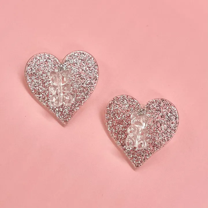 グミベアグリッターハートピアス シルバー