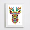 【現代アートポスター】動物 しか 鹿 模様 イラスト A2(L) フレームセット:白 55.1×73.3cm
