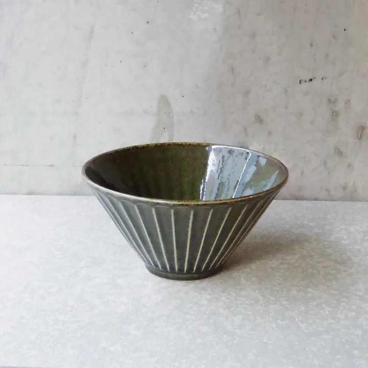 【軽量のうつわ】しのぎ反りどんぶりL 織部