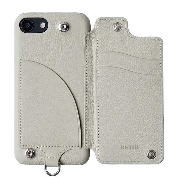 2023年9月より弊ブランドはDemiurvo(デミウルーボ)改めDEMIU(デミュウ)に改名いたします。 それに伴い、DEMIUの名を配したブランドネーム・ロゴが採用されます。 一部商品に関しては、Demiurvoとして引き続き販売いたしますが順次モデルチェンジ予定です。 何卒、ご理解のほど宜しくお願い致します。 フランス語で「風船」を意味するBALLON(バロン)。 風船のようなモコモコしたテクスチャーをデザインしたお財布機能つきiPhoneケース。 上質なレザーの質感と指にフィットする感覚が心地よいモデルです。 思わず目を惹かれるデザインと質感で存在感抜群のアイテムです。右扉の内側に2段のカードスリットと隠しポケット、左側に収納ポケットを備えた便利なアイテム。 蓋をスタンドにして横置きできるのでYouTubeやテレビ会議にも便利。 ショルダーなどを付けられるD型リングが付いているので、別売りのストラップとのセットや色違いでコーディネイトするのもおすすめです。 ※iPhone12 miniおよび13miniの背面のカード入れに関してですが左側(ケース装着側)の仕切り部分と、右側の裏ポケットにはカードはお入れいただけません。右側のカード入れにはカード段が1つの仕様となります。ご注意ください。 ※ストラップは別売りです。 ー仕様ー ・素材 本体:フランス産牛革 ケース部分:ポリカーボネート ・重量 約55g