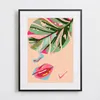 【現代アートポスター】ボタニカル 観葉植物 唇 Lip 女性 イラスト A2(L) フレームセット:黒 55.1×73.3cm