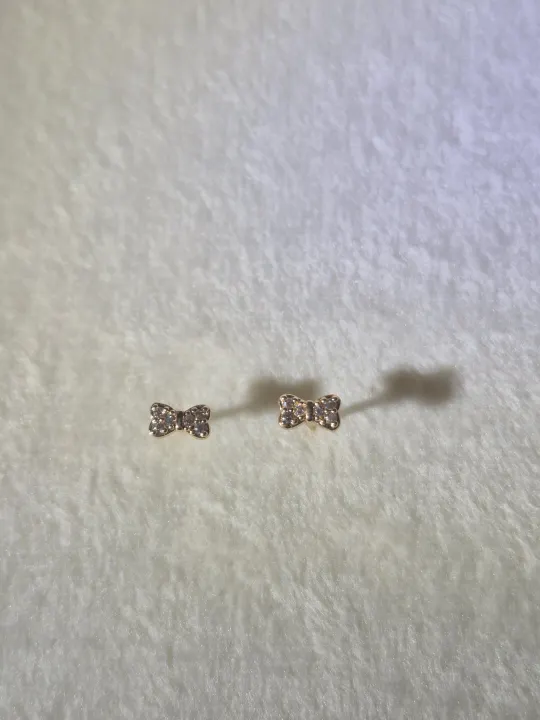 小ぶりのリボン調のジルコニアピアス。 フェミニンで普段使いにおすすめです。