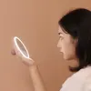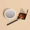 とっさのメイク直しも完璧に。サッと使えるLEDライト付きハンドミラー 鏡のフチにLEDライトがついた「女優ミラー」を手の中に収まる手鏡タイプにしたメイク用ハンド女優ミラーです。 カバンに入れておけば外出中のメイク直しや、部分的なライトアップにピッタリ。 【いつもあなたのそばで照らすミラー】 本体にはバッテリーが搭載されており、ポータブルで明るく照らすことができます。最大3時間のLEDの使用が可能で、ボタンの長押しで調光することができる機能を搭載。側面のスイッチを押すとミラー周囲のLEDライトが点灯し、顔を明るく照らし表情のチェック、メイク直しをスムーズに行うことができます。本体の背面にはシリコンのボールがついており、片手で持つ際に安心したグリップ感がありメイク直しもスムーズです。日中のメイク直しもこれがあればスムーズに。 【詳細】■セット内容:本体、充電ケーブル、説明書 ■素材:ABS、PMMA、Silicon ■サイズ:約114×114×40mm ■重さ:約106g ■入力:DC5V/1A ■バッテリー:800mAh
