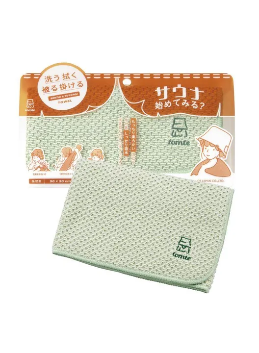 温泉やサウナで使える「tomte(トムテ)マイサウナボディタオル」しっかり吸水(綿の約2倍)する丈夫なタオルで、ひざ掛けとしてもちょうどいいサイズ感。 十分な長さがあるので、力を入れて背中までゴシゴシと気持ち良く洗うことが出来ます。「洗い心地」が柔らかいのが特徴です。 モコモコした肌触りで「泡立ち」が良く、少しのボディソープでもしっかりと泡立ってくれます。丈夫なので、何度でも使い続けることが出来ます。 身体に付いた水滴をしっかり拭き取りやすく、水気もしっかりと絞ることが出来るので、外気浴やお風呂上がりにとても便利です。 髪を掴むように拭くだけで、残った水分をしっかりと吸水することが出来ます。ゴシゴシ拭き取る手間が減って髪が乾かしやすい。