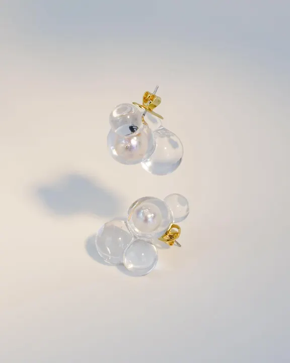 水の中の泡のようにも見える透明な樹脂の球体を連ねたピアスです。 一粒パールを閉じ込めました。 涼し気な印象で顔を華やかに見せてくれます。 - 傷つきにくく変色しにくい樹脂素材を厳選して使用しています。 素材:樹脂、淡水パール サイズ:縦34×横22mm 天然素材のため石のサイズには個体差があります。 製造国:日本 納品予定日:ご発注から1ヶ月程度 KOREのアクセサリーコレクションは熟練のジュエリークリエイターがひとつひとつ仕上げています