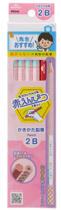 【学校の先生と共同開発】 先生おすすめ かきかた鉛筆 2B (鉛筆11本+赤鉛筆1本入) ピンク