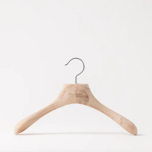 防虫・消臭効果のあるくすのきハンガー 【生産地】 日本 木部:くすのき 金具:スチール(クロムメッキ)女性用のジャケットやコートに最適なサイズです。厚みのある肩幅で大切な衣類の形をキープします。