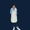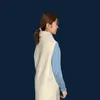 全く新しい形のロングベスト Lumiミルキーホワイト 家でも外でも活躍してくれるカジュアルなロングベストです。[ 首から肩回りが「とにかく暖かく、重宝しています。」とのお声を沢山頂き、ロングを作りました。 このロングベストは、軽くて暖かい圧縮ニット素材です。 首まわり、腰まわり、背中、おしり、太ももとすべてが暖かい! 一番の特徴は、襟にあります。 胸元からふんわりと襟が二重になっているところ。 タートルネックとは違って、首回りに着かず離れずの距離感!なのに、首から肩までとても暖かいし、守られてる感じがあるのです! 広く取ったアームホールで袖なし、ひざ丈でスリットが入っているので動きやすいです。 秋口から春先まで着回せます。 生地は圧縮ニットの新素材。 防寒性に優れていて、軽くて暖かい素材。 ニットとありますが、軽くて張りのある薄いフェルトのようです。 伸縮しません。 *ポリエステル素材は、静電気が気になるもの。この圧縮ニットは着脱のとき、パチパチと音がするものの、一日中着ていても静電気はほとんど起きませんでした。 静電気を抑えたいときは、柔軟剤を多めに使用することをお勧め致します。