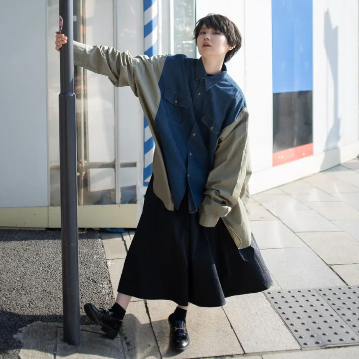 異なる形と大きさのシャツを組み合わせたシャツ。 メンズレディース問わず着用可能です。 MODEL:163cm
