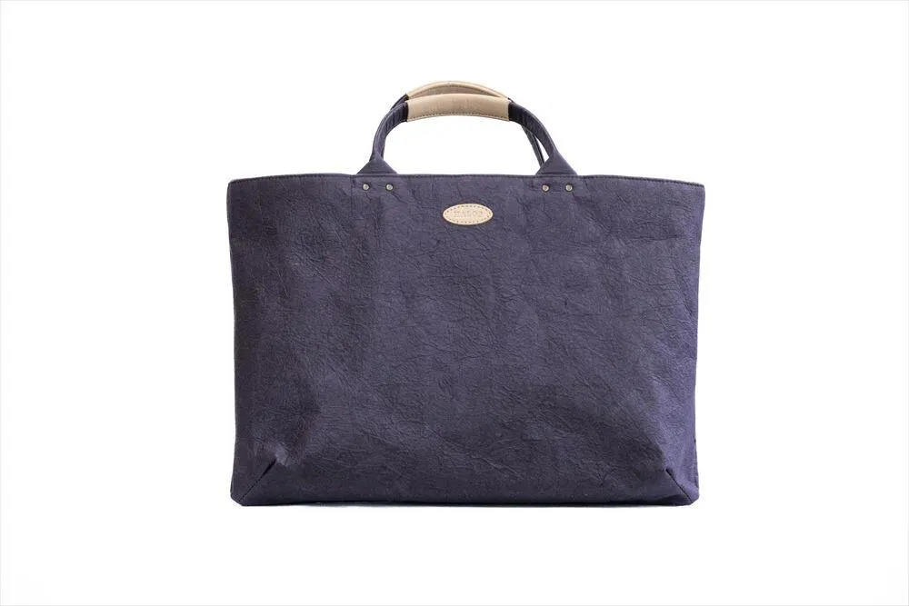 【和紙雑貨】ハンドバッグM バッグ 鞄 兵庫県多可町の特産品である杉原紙と播州織を使用。 ロゴネームやハンドル部分などで使用している革も多可町で穫れた鹿の革を使用しています。 生産、素材ともに【made in japan】でものづくりを行っております。 杉原紙は100%自然由来の原料で出来ており、鹿革も獣害駆除で穫れた鹿の革のみを使用しています。 ある程度の重さに耐えられるような芯材選びや縫い方はこだわっています。 マチはありませんがダーツを底付近に4カ所(表と裏)取り入れてるため底に膨らみがあり、 フラットな鞄より収納ができます。内装にはポケットがついているため便利!
