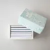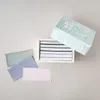 2025 【Winter limited】 LETTER PRESS BOX。 淡く雪のようにくすんだブルーの外箱。セージブルーとも、アイスブルーとも見てとれるその絶妙な色合いは、当たる光によって表情を変えます。 中身のカードの差し色には、冬の森を思うような上品で落ち着いたカラーをセレクトしました。ピンクゴールドで印刷されたカードは、静かな森からこぼれる家々の温かな灯りを思わせます。 『LETTER PRESS BOX とは?』 活版印刷の余り紙を捨てるのはもったいない!という気持ちから生まれたメッセージカードです。箱は活字をイメージしたモノグラム柄で活版の凹凸を存分に楽しめます。箱を開けるとアンティーク調のデザインカードが、たっぷりと150枚程度入っています。手触りや書き心地が異なる、種類豊富な紙をお楽しみください。 ※商品のスペック、カードの紙の種類は予告なしに変更する場合があります。※写真はイメージとなります。 【SIZE】 BOX:W112×H72×D57㎜ CARD:W93×H44㎜ 100seets over 【PRINT】 BOX:活版印刷1色 (淡水色) CARD:活版印刷1色 (ピンクゴールド / ネイビー)