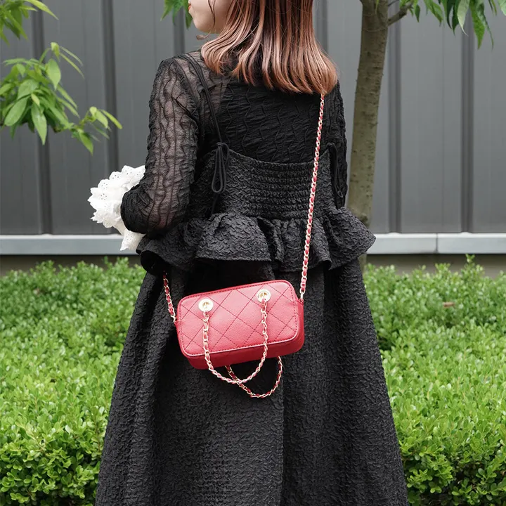 ✓上品な2WAYキルティングチェーンバッグ – 大人のための洗練ミニバッグ マットな質感と華やかゴールドで、シンプルコーデに上品なアクセント。 ✓落ち着いた質感が魅力のキルティング マットな生地でキルティングデザインが魅力。 カジュアルにもきれいめにも馴染む、大人のための上質バッグです。 ✓ショルダー&ハンドの2WAY仕様 ゴールドチェーンがアクセントになったショルダーストラップは、持ち方を変えられる2WAYデザイン。 シーンや気分に合わせてスタイリングを楽しめます。 ✓コンパクトでも実用性◎ スマホ・財布・メイク用品が入るほどよいサイズ感で、ミニバッグながらも日常使いに十分な収納力。 必要なものだけをすっきりとまとめられます。