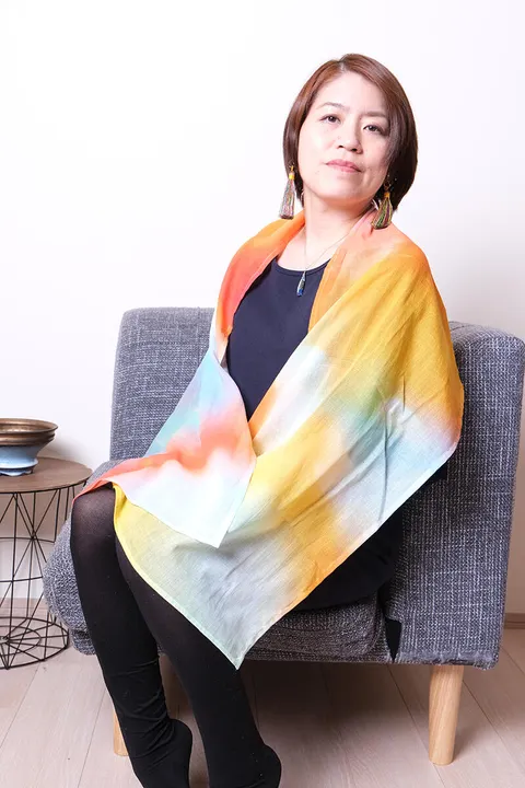 今まで、様々な写真をお仕事としても、プライベートでも、撮ってきた中で、昨年よりヒーリングフォトという幻想的でうっとりと見つめてしまう、何かメッセージを感じるようなアートフォトの構想が思い浮かび、無我夢中で作品撮りをするようになりました。 このヒーリングフォトを飾る以外にも、日常で使えるものや触れてエネルギーを感じられるものにできないかと考えていた所、ご縁で桐生の染物屋さんをご紹介いただき今回の商品が実現しました。 折る位置によって色の出方が変わるのでストール以外にも帯締めやバックのハンドルに巻いたり、ヘアバンド・ターバンにして楽しむこともできます。 安心な日本製、肌触りも良い綿100%ですので冷房対策や薄手ではありますが首に巻くと暖かく感じますので冷え対策のファッションアイテムとして春夏秋冬お使いいただけます。