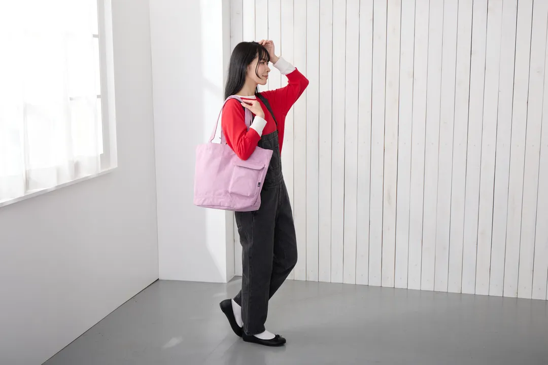 環境に優しいリサイクルコットン素材のエコトート。 日常的に廃棄される大量の綿Tシャツを色別に回収管理し、それを細かく切り刻み“わた”にしていきます。 その原料“わた”から紡績された糸は、大量の水・染料を使う工程を経ずリサイクルされます。 新たな生地に生まれ変わり、その生地からトートバッグがつくられています。 もとの色をそのまま活かしたリサイクル糸。 水不使用、染料不使用で、手が届くフレンドリーなエコトートです。 肩に掛けても手に持ってもバランスの良いサイズ。 より自分らしく過ごすための素材を生かしたオトナトート。 縦横それぞれ異なる色の糸を使用し、生地を杢調に織り上げました。 個性的でありながら、落ち着きも感じられる風合いに。 どんなファッションにもすっとなじむ絶妙なバランス。 春夏秋冬、オールシーズンで活躍してくれます。 丸みのあるフォルムがリラックスな雰囲気。 シンプルだけど、オシャレで機能的。 チャームやスカーフなど、お手持ちのアクセサリーが映え、表情を変えて楽しむことも…。 自分だけのアレンジを楽しめます。まさに、大人の“遊びゴコロ”をくすぐるデザインです。 広めの丸底デザイン。 見た目以上の収納力で、A4サイズのファイルや13インチのノートパソコン、ポーチ、タンブラー、ストールまでらくらく収納。 デニムにもワンピースにも合わせやすく、普段使いから旅行、ママバッグ、ワークバッグまで幅広く活躍します。 開き口が広くモノの出し入れがしやすく、中身もパッと確認できます。 アクセントになる外ポケットがかわいい。 パスケース、ハンドクリームや除菌スプレーなどの小物の収納に。 自分用にはもちろん、大切な方へのギフトにもおすすめ。 使い込むほどに手になじむのも魅力のひとつ。 しっかりしたつくり、心地よいデザインと使いやすさが詰まったトートバッグです