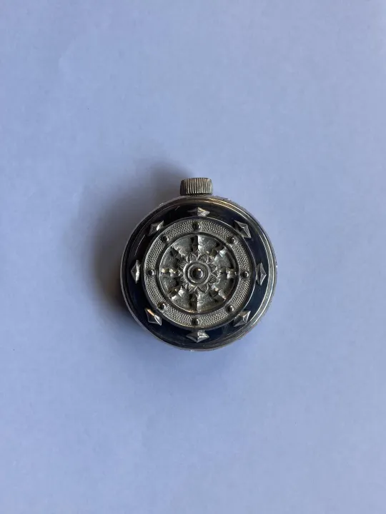 輪宝の裏側がネジになっていて外せば補給口があります。もう一つのネジを緩めれば、小出し口があります。 小さいネジを完全に外さなくても塗香が出せるので、ネジを失う心配がありません。 裏面には如意宝珠、厚みには阿吽の龍が彫金がされています。