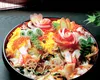 便利な1合用×2袋のちらし寿司の素 京都では「ばらずし」とも呼ばれ、年中親しまれている「ちらし寿司」、そんな京都のちらし寿司は「ちりめんじゃこ」が入っている事が特徴。 見た目も楽しんで頂ける様に、9種類(筍、しいたけ、凍り豆腐、干ぴょう、れんこん、人参、ちりめんじゃこ、みぶ菜、菜の花)の彩り豊かな具材を使っております。 菜の花は包丁で食べやすいサイズにカット、れんこんは輪切りにする等、家庭で手作りした様な「ちらし寿司」が作れます。 また、すし酢についても木村九商店が独自にブレンドした、京都らしいまろやかで飽きのこない味に仕上げております。 作り方はとっても簡単 炊きたてご飯に混ぜるだけ! 錦糸玉子や刻みのりを加えるだけで、本格的なちらし寿司が出来上がります。 一人暮らしや小人数のご家庭でもお使い頂けるように、1合用×2袋となっております。 ひなまつり等のお祝い事はもちろん、行楽のお弁当やいなり寿司など普段使いにもご利用頂けます。 お好みでエビやマグロ等の添えて海鮮丼風にする事も出来ます。