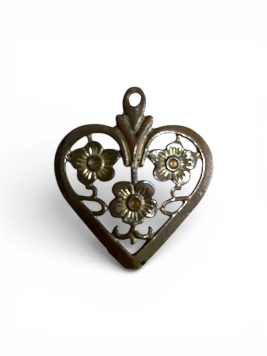 ロサンゼルスで買付した1点物のヴィンテージジュエリー 愛らしいお花のモチーフが入ったハートのデザインが特徴的な、ヴィンテージ感漂うペンダントトップです