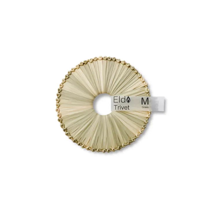 菅の笠から生まれたEldのためのトリベットは、熱々のEldを安定して置けるようにぴったりサイズに作った鍋敷きです。 江戸時代の旅支度に欠かせなかった編み笠の材料”菅(スゲ)”が使われており、かつて釜敷きにも使われた菅は熱に強く、防水透湿性も非常に高い素材です。 水が降りかかると撥水性のある繊維がはじき、湿気が多ければ編んだ菅が膨らんで内部に通さず、乾燥すれば菅が戻り、自然に風通しが良くなる優れもの。 ご家庭に合わせて使いやすいサイズとお好みのカラーをお選びいただけます。 EldスキレットMや片手鍋に最適なMサイズ。 馴染みやすいベージュ色であるプレーンと本来の色が楽しめるグラスの無地2色は、素材感がお好みの方にお勧めです。 深江菅細工 大阪は深江の伝統工芸品で、江戸時代の旅支度に欠かせなかった編み笠の材料”菅(スゲ)”。 手作業で丁寧に編み込まれた編み目、昔ながらの技法で染められた差し色は、ひとつひとつ風合いが異なり、使い込むほどに愛着がわく逸品です。かつて釜敷きにも使われた菅は熱に強く、防水透湿性も非常に高い素材です。 菅本来の色が楽しめるプレーン2種類の他、ポトペリーオリジナルカラーのグレーとグリーンがございます。