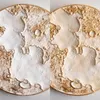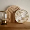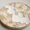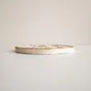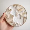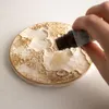『 使うほど深みが増す、月のアロマプレート 』 精油を垂らした跡が月の模様のようになり、 使えば使うほど味が出る、月のアロマプレートです。 本革を育てるように、あなた好みの月の陰影をお創りいただけます。 ベッドサイドはもちろん、インテリアオブジェとしてお気に入りの場所に飾ってお楽しみください。 【 アロマストーンとは? 】 精油を滴下するだけで香りを楽しめる芳香器。 半径1m程度の空間でふわっと優しく香ります。 電気や火を使わないためエコで、 ベッドサイド、お手洗い、玄関、車内などで気軽に使うことができます。 お手入れの必要もありません。 香りが充満しないので、 強い香りが苦手な方にもおすすめです。 また、香りは1日〜数日程度で消えてゆきます。 そのため1つのアロマストーンで色々な香りをお楽しみいただけます。 【 SIZE 】 アロマストーン:直径12cm×厚み1cm 【 DETAIL 】 繊細な月のクレーター模様が特徴のアロマプレート。 下地にオーカーやブラウンのカラーを混ぜ、マーブル模様に仕立てています。 その上からひとつひとつゴールドカラーを塗布しており、キラキラ輝きます。 真ん中には、精油を滴下しやすいよう、天の川のようなクレーターを創りました。 精油の跡は、満遍なく滴下するとムラになりにくく、 同じ部分に滴下し続けると陰影がつきやすくなります。 また精油の色によっても、跡の残り方が変わります。 あなたの手で、より深みのある月に育ててください。 ※石膏の特性上、気泡の抜けた跡ができやすくなります。  あらかじめご了承ください。 【 おすすめの使い方 】 ✔︎ベッドサイドに置いて、睡眠のお供に ✔︎お気に入りのスペースに置いて、インテリア小物のひとつとして