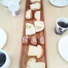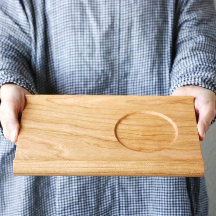 リバーシブルなカフェトレ―。 このカフェトレー senroは、両面とも表面が浮いた形にデザインされていて、表と裏、リバーシブルで使える便利なアイテムです。 片面には1カ所、凹みが付けてあり、カップやお皿を置くのに便利。使用シーンによって使い分けができます。 〈 くぼみの直径は、約8cm 〉 マグカップなどにちょうど良いサイズ感です。 〈 持ちやすい形 〉 両端を少し浮かせた形状にすることにより、持ちやすくなっています。 〈 つなげて使えます 〉 2〜3枚あれば、つなげるように並べて使うこともでき、その様子が鉄道の線路のようなので、「senro(せんろ)」とネーミングされています。 〈 スタッキングできます 〉 積み重ねて置くことができるので、収納時にかさばりません。 〈 高級材から削り出した贅沢な作り 〉 アメリカンブラックチェリー(チェリー)という高級材から削り出した、とても贅沢な作りです。 ▼チェリーの特徴はこちら▼ ・黒いさくらんぼの実がなる木。 ・赤みがあり、木目が美しい高級材です。 ・特に女性に人気があります。 ・時間を重ねるうちに深みのある飴色(あめいろ)に変化します。 〈 ゆったり使える幅広サイズ 〉 長さは36cm。カップやお皿、ポットなどをゆったりと置くことができます。 〈 自然塗料で仕上げています 〉 仕上げには植物油を主成分とした自然塗料を使用しています。 木の風合いや肌触りが残るナチュラルな仕上げ方法です。 時間が経つと、深く濃い色合いに変わっていくため、その経年変化も楽しめます。 〈 メンテナンスできます 〉 自分で簡単にメンテナンスできるのも、自然塗料仕上げの良いところ。 つやがなくなってきたな、と思ったら、おうちにある食用のオイル(オリーブオイルやクルミオイルなど)を布などで薄く塗り伸ばして、半日から1日程度乾かしてください。 オイルがしっとりと馴染んで、つやが戻ってきます。 〈 新築やご結婚のお祝いとして 〉 新築やご結婚のお祝いとして、オススメしたいアイテムです。 ※天然木で作られた商品のため、木目や色合いなどは、個々の商品によって異なります。あらかじめ、ご了承くださいませ。 ※お料理などを直接載せると、油染みなどが残ることがあります。気にされる場合には、お皿に載せて置いたり、紙ナフキンの上に載せるなどしてください。 ※価格は1枚あたりの価格です。