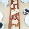 リバーシブルなカフェトレ―。 このカフェトレー senroは、両面とも表面が浮いた形にデザインされていて、表と裏、リバーシブルで使える便利なアイテムです。 片面には1カ所、凹みが付けてあり、カップやお皿を置くのに便利。使用シーンによって使い分けができます。 〈 くぼみの直径は、約8cm 〉 マグカップなどにちょうど良いサイズ感です。 〈 持ちやすい形 〉 両端を少し浮かせた形状にすることにより、持ちやすくなっています。 〈 つなげて使えます 〉 2〜3枚あれば、つなげるように並べて使うこともでき、その様子が鉄道の線路のようなので、「senro(せんろ)」とネーミングされています。 〈 スタッキングできます 〉 積み重ねて置くことができるので、収納時にかさばりません。 〈 高級材から削り出した贅沢な作り 〉 アメリカンブラックチェリー(チェリー)という高級材から削り出した、とても贅沢な作りです。 ▼チェリーの特徴はこちら▼ ・黒いさくらんぼの実がなる木。 ・赤みがあり、木目が美しい高級材です。 ・特に女性に人気があります。 ・時間を重ねるうちに深みのある飴色(あめいろ)に変化します。 〈 ゆったり使える幅広サイズ 〉 長さは36cm。カップやお皿、ポットなどをゆったりと置くことができます。 〈 自然塗料で仕上げています 〉 仕上げには植物油を主成分とした自然塗料を使用しています。 木の風合いや肌触りが残るナチュラルな仕上げ方法です。 時間が経つと、深く濃い色合いに変わっていくため、その経年変化も楽しめます。 〈 メンテナンスできます 〉 自分で簡単にメンテナンスできるのも、自然塗料仕上げの良いところ。 つやがなくなってきたな、と思ったら、おうちにある食用のオイル(オリーブオイルやクルミオイルなど)を布などで薄く塗り伸ばして、半日から1日程度乾かしてください。 オイルがしっとりと馴染んで、つやが戻ってきます。 〈 新築やご結婚のお祝いとして 〉 新築やご結婚のお祝いとして、オススメしたいアイテムです。 ※天然木で作られた商品のため、木目や色合いなどは、個々の商品によって異なります。あらかじめ、ご了承くださいませ。 ※お料理などを直接載せると、油染みなどが残ることがあります。気にされる場合には、お皿に載せて置いたり、紙ナフキンの上に載せるなどしてください。 ※価格は1枚あたりの価格です。