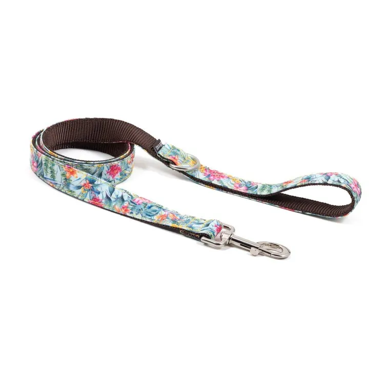 濃淡のあるグリーンの首輪は、夏のマストアイテムのひとつです。 トロピカルなプリントにピンクや黄色の花を添えて、チルスタイルの完成です。この商品は、環境保護に貢献するためにリサイクル素材を使用しています。バルセロナの自社工房でデザインされ、地元のサプライヤーとともにハンドメイドされており、カーボンフットプリントの削減を実現しています。 ? 素材裏地:ポリエステル100%リボン(エコテックス認証)表地:リサイクルポリエステル94%、スパンデックス6%バックル:特許取得のアルミニウム製サイドリリース ? ハンズフリーリードについて長さは約210cm。大小のリング位置はそれぞれ調節可能なマルチポジションのため、肩がけリード、手持ちリードとしても自由にお使い頂けます。