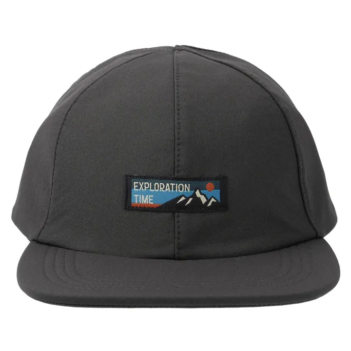 フロントにレトロなアウトドアなネーム付き。ツバは厚手の柔らかい芯入り。アジャスターはナイロンテープの差し込みタイプです。
