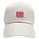 コットンリネン素材の涼しげなキャップ。インポートシャツのネームタグ風の織りネームをつけています。