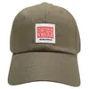 コットンリネン素材の涼しげなキャップ。インポートシャツのネームタグ風の織りネームをつけています。